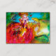 Colorée, fantaisiste, vibrante caractère de mascarade vénitienne.Femme blonde sophistiquée est assise avec une rose rouge et un masque plumé à la main avec des tissus fuchsia or étincelant d'un costume de boule masqué baroque avec des plumes et un chien. Aquarelle peinture avec des couleurs vives en jaune, bleu, rose, vert, or étincelants et argent, inspirée des personnages de Comédie de l'Art ( Commedia dell' Arte ) , Carnaval de Venise et les masques de plume vénitienne.Cette carte cool et artistique est parfaite pour le coiffeur, coiffeur élégant, maquillage théâtral artistes, costumers, créateurs de vêtements, propriétaires de boutique, actrices, mannequins, cosmétiques, cosmétologues, parfums, particuliers, consultants en armoires, stylistes, fashionista, industrie du divertissement et autres professions créatives.