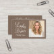 Carte De Visite Mocha Brown Cream Script Photo Lashes and Brows