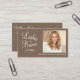 Carte De Visite Mocha Brown Script Photo QR Code Lashes and Brows