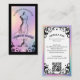 Élevez votre marque de maquillage avec notre carte de visite Iridescent Holographic Vintage Makeup Studio. Dotée d'un cadre orné dessiné à la main sur un fond holographique iridescent faux, cette carte crée une esthétique saisissante inspirée des tarots. L'avant met en valeur notre style de dessin à la main d'un mannequin de couture (mannequin de tailleur) centré dans le design de la scroll, laissant de l'espace pour le nom de votre entreprise et votre slogan. Le verso affiche des fioritures élégantes, un cadre holographique et vos coordonnées. La combinaison dramatique du noir avec des accents holographiques scintillants crée un look sophistiqué, mystique et inspiré du vintage, Parfait pour les créateurs de mode, les artistes maquilleurs, les studios de beauté et les professionnels créatifs à la recherche d'une présentation de marque raffinée, élégante et mémorable. Con
