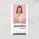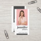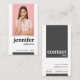 Un carte de visite vertical moderne pour modèles et actrices. Ce modèle carte de visite affiche votre photo et votre nom sur le devant. Toutes vos informations de contact, y compris votre pseudo sur les réseaux sociaux, se trouvent à l'arrière de cette conception recto verso.