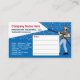 Il s'agit de cartes de visite pour les services de lavage pression/puissance avec photo de la caricature de lave-pression. Il vous suffit d'ajouter vos propres informations à la conception pour customiser ces cartes de visite professionnels de nettoyage et de lavage sous pression/puissance.