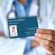 Modèle de carte de visite Médicale pour le médecin avec l'image d'un médecin dans le arrière - plan que vous pouvez remplacer par votre propre portrait professionnel de la santé dans ce design moderne organisé pour l'industrie de la santé.