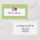 Ce design avant carte de visite professionnel dispose d'un arrière - plan vert pastel avec un rose d'aquarelle violet et verdoyant au-dessus d'un stand de stand-out pour votre nom. Personnalisez le texte à l'avant et à l'arrière ou cliquez sur personnaliser pour sélectionner un style, une taille ou une couleur de type que vous souhaitez. Le dos contient le nom et les informations de l'entreprise. Personnalisez les champs de texte, supprimez tout texte ou cliquez sur personnaliser pour sélectionner un style, une taille et une couleur de type que vous souhaitez.