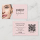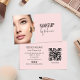 Carte De Visite Modern Blush Pink Script Font QR Code Photo Makeup