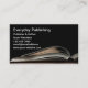 Book publishing and Author custom business card design template with an open book graphic in the background and simple classic business card layout you can customize online.