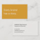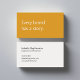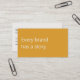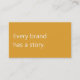 A modern, minimalist business card perfect for copywriters and freelance writers. The front features a mustard yellow background with the phrase "Every brand has a story" in soft, off-white text. The reverse has an off-white background with dark grey text and space for your contact details. All text on the card if fully editable.
