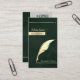 Carte De Visite Modern Dark Emerald Green Gold Quill Notary Public