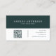 Carte De Visite Modern Elegant Dark Green Initial QR Code