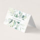 Elegant folded business card featuring your name in between a top and bottom border of eucalyptus leaves and greenery with a hint of blue, over a pastel watercolor wash. The backside has your contact information. Use the template to generate a QR code or remove it in the design editing tool. This simple, rustic design is great for a gardener or landscape professional.
