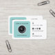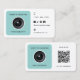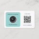 Modern professional cover with photo camera lens and QR code. With contact and social media handles. Ideal for photographer, photo editor, videographer, video editor, drone professional.