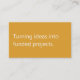 A modern, minimalist business card perfect for fundraising consultants / grant writing professionals. The front features a gold yellow background with the phrase "Turning ideas into funded projects" in soft white text. The reverse has a soft white background with slate grey text and space for your contact details. All text on the card is fully editable.