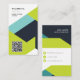 A bold and contemporary vertical business card featuring a geometric color-block design in fresh, modern tones. The front includes a scannable QR code for easy access to your website or portfolio, while the back displays your contact details and social icons in a clean, organized layout. Perfect for designers, creatives, and entrepreneurs who want a vibrant, professional way to stand out.