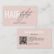 Carte De Visite Modern hair stylist QR Code blush pink