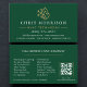 Promote your HVAC services with this modern green and gold business card featuring a scannable QR code for instant contact or quote requests. The minimalist gold snowflake-and-flame icon elegantly represents heating and cooling, while the deep green backdrop and clean typography convey reliability, quality, and environmental awareness. Perfect for HVAC professionals seeking a refined, print-ready, and eco-inspired look.
