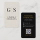 Carte De Visite Modern Linen Gold Monogram QR Code