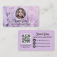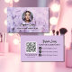 Carte De Visite Modern makeup floral purple photo qr code