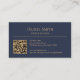 Carte De Visite Modern Minimalist Dark Blue Initials QR Code