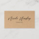 A modern, minimalist business card template featuring a rustic kraft paper print background for a warm, organic touch. The front highlights your name in elegant script, creating a sophisticated yet approachable impression—perfect for a consultant or event planner. The backside includes a clean layout with a QR code for instant access to your portfolio or website, alongside neatly arranged social media icons for seamless connectivity. This design blends timeless rustic charm with contemporary professionalism, making it ideal for creative professionals who value both style and clarity.