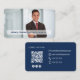Carte De Visite Modern Navy Blue QR Code Photo Networking