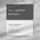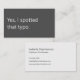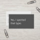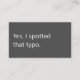 A modern, minimalist business card perfect for freelance proofreaders. The front features a slate grey background with the apt phrase "Yes, I spotted that typo" in soft white text. The reverse has a soft white background with slate grey text and space for your contact details. All text on the card is fully editable.