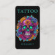 Professional tattoo artist business card featuring a bold floral skull tattoo design. Perfect for tattoo studios, tattooists, and tattoo shops seeking artistic, modern, and eye-catching branding.