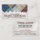 This professional business card for Tiling Services features a modern, material-focused design that showcases a variety of stone and ceramic samples. The dark marble background is accented with gold, creating a premium aesthetic that reflects quality craftsmanship. The layout highlights expertise in installation and custom patterns with a clean visual hierarchy. This design is also ideal for stone masons, remodelers, and flooring specialists.