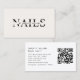 Moderne, Beige, QR Code Carte de visite - Disponible en 18 couleurs. Ce design carte de visite élégant et professionnel est doté d'une typographie audacieuse et d'un code QR personnalisé, parfait pour les entrepreneurs d'aujourd'hui qui sont les premiers à faire du numérique. Idéal pour les professionnels de la beauté, les techs à ongles, les artistes fouetteurs, les coiffeurs, les maquilleurs et les experts en bien-être. Customisez facilement votre nom, titre, coordonnées et code QR pour accéder à votre site Web, page de réservation ou profil Instagram. Imprimé sur un carton de haute qualité, ce design est disponible en 18 options de couleurs époustouflantes - noir, rose vif, blanc, beige, et plus encore - pour correspondre à votre marque ou style de salon. Étendez-vous et restez connecté avec une carte qui est