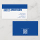 Réseau avec ces cartes de visite bleus et blancs élégants avec vos informations sur le devant et un code QR pour scanner à toute adresse URL sur le dos. Personnalisez-vous pour être le vôtre.