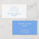 Cartes de visite de baby-sitter modernes. Dispose d'un dessin arc-en-ciel bleu clair à l'aide d'un crayon. Personnalisez le devant et le dos de la carte.