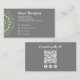Ce grand carte de visite professionnel dispose d'affaires moderne, élégante, chic, simple et tendance gris vert avec code QR site de médias sociaux, bureau entreprise tendance design, design contemporain élégant minimaliste design, connexion avec moi en ligne, téléphone site Web cellule email icône, professionnel minimaliste girly feminine, cercle forme floral sophistiqué, amusant style géométrique lunaire.