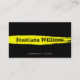 Simplement élégant, ce carte de visite noir sobre obtient son style professionnel moderne de la police stylée appliquée à une bande contemporaine de jaune. Cool et carte de visite unique, il est idéal pour un large éventail de professions. Un excellent choix pour le professionnel de la publicité ou du marketing, ou pour toute personne en position créative et d'avant-garde.