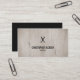 Elégant modèle de carte de visite personnalisable avec arrière - plan en bois et motif ciseau noir. Design élégant et simple, parfait pour salon de beauté, coiffeur, barbier, coiffeur.