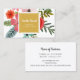 Un carte de visite fleuri et frais, parfait pour un conseiller en beauté avec une boîte à carré jaune doré à laquelle vous pouvez ajouter votre nom et votre titre. Personnalisez en ajoutant vos coordonnées à l'arrière.