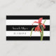 Un carte de visite moderne à rayures horizontales noir et blanc avec une belle fleur d'amaryllis rouge. Parfait pour le fleuriste contemporain. Personnalisez en ajoutant votre profession de choix, votre nom et vos coordonnées.