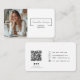 Découvrez ce Carte de visite moderne professionnel avec une photo personnalisée et un code QR scannable. Parfait pour les designers d'intérieur, les agents immobiliers, les consultants et les entrepreneurs, ce design élégant allie la marque personnelle à la fonctionnalité. Téléchargez votre photo pour une touche personnalisée et polie et liez votre code QR à votre site Web, votre portfolio ou vos médias sociaux pour un accès instantané. Une façon moderne et élégante de rendre le réseautage facile et mémorable.