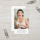 Ce carte de visite dispose d'une photo professionnelle, adaptée à de nombreux titres professionnels qui exigent une atmosphère élégante, comme planificateur d'événements, styliste de mode, styliste de mode, styliste personnel, modèle ou autres professionnels de la création. L'envers contient les coordonnées, les médias sociaux et le code QR. L'arrière - plan est un vert sage subtil. Remplacez cette photo par votre propre image créative.