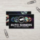 Couvre-teintes bleu géométrique professionnelle inspirée de l'industrie du nettoyage automobile. Espace pour logo inclus dans le centre avec arrière - plan noir. Images décrivant des services comme le polissage, le lavage sous pression, etc.