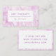 Ce carte de visite romantique en tissu flottant rose moderne de thérapie art moderne présente des visuels en tissu flottant doux et abstraits dans des tons roses apaisants. Conçu pour les professionnels de l'art, de la psychothérapie et de la santé mentale, il allie une esthétique créative et bien-être. Parfait pour les conseillers, les guérisseurs et les professionnels de la santé, cette carte élégante offre une option moderne et polie pour les psychothérapeutes et les professionnels du bien-être.