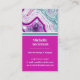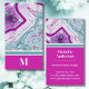 Carte de visite initiale chic moderne en pierre de teinte sarcelle magenta. Les cristaux et les géodes d'agate continuent d'être une tendance favorite ! Cette impression présente une image rapprochée d'une pierre de géode de teinte sarcelle ou turquoise et de couleur violette ou magenta rose, complète avec de petits cristaux et des bandes blanches. Accentué avec un blocage de couleur vibrant pour lui donner un look moderne et tendance. Ajoutez votre initiale pour le personnaliser.