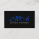 Donnez à votre entreprise un look classique et propre avec le Monogramme bleu foncé Elegant Script Black Arrière - plan Carte de visite. Parfait pour les postes d'entreprise, maquilleur, planificateurs d'événements, styliste et bien plus encore. Ajoutez votre texte et vos informations professionnelles, ces cartes sont prêtes pour le modèle. Pour toute demande de conception, contactez le concepteur. ©2010 Joshua Martin