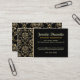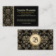 Carte De Visite Monogramme Classé Or Élégant Damas Médiéval Noir