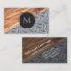 Carte De Visite Monogramme d'acier diamant de surface de bois orga