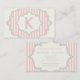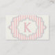 Carte De Visite Monogramme dans un cadre à rayures roses, blanches