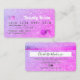 Un élégant carte de visite moderne et élégant de style beauté Hair et maquillage artiste de style carte de crédit avec une typographie de script moderne sur une parties scintillant chic faux rose tendance arrière - plan. tout le texte est personnalisable, ajoutez vos médias sociaux. Doté d'une bande d'or faux rose. Ajoutez votre logo, votre monogramme et votre code QR.