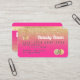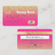 Un élégant carte de visite moderne et élégant de style beauté Hair et maquillage artiste carte de crédit avec une typographie de script moderne sur un chic faux jaune parties scintillant d'or sombre dégradé et brillant neon rose brillant arrière - plan tendance . tout le texte est personnalisable, ajoutez vos médias sociaux. Avec une fausse bande d'or. Ajoutez votre logo, votre monogramme et votre code QR.