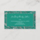 Ce design de poutres glamour à la mode, professionnel, amusant et unique présente un grand monogramme personnalisable en gris argenté cool sur le devant, une élégante typographie d'affichage, ainsi qu'un nom personnalisable dans un magnifique script avec un look à la main en blanc à l'intérieur d'un rectangle vert turquoise en malachite gris, avec le titre de l'emploi ci-dessous. Le arrière - plan comprend du marbre argenté en verre imprégné de parties scintillant et brillant sur un arrière - plan vert turquoise. Le verso de la carte contient du texte plus personnalisable. Vous pouvez personnaliser cet élément en modifiant le monogramme, le nom et le texte dans le modèle du produit.