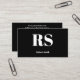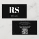 Un carte de visite noir monogramme moderne avec espace pour votre nom, initiales, adresse de médias sociaux, site Web, adresse postale et numéro de téléphone.