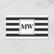Carte De Visite Monogramme moderne noir blanc rayures