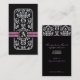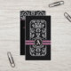 Carte de visite personnalisé noir blanc damassé bande rose bande monogramme.